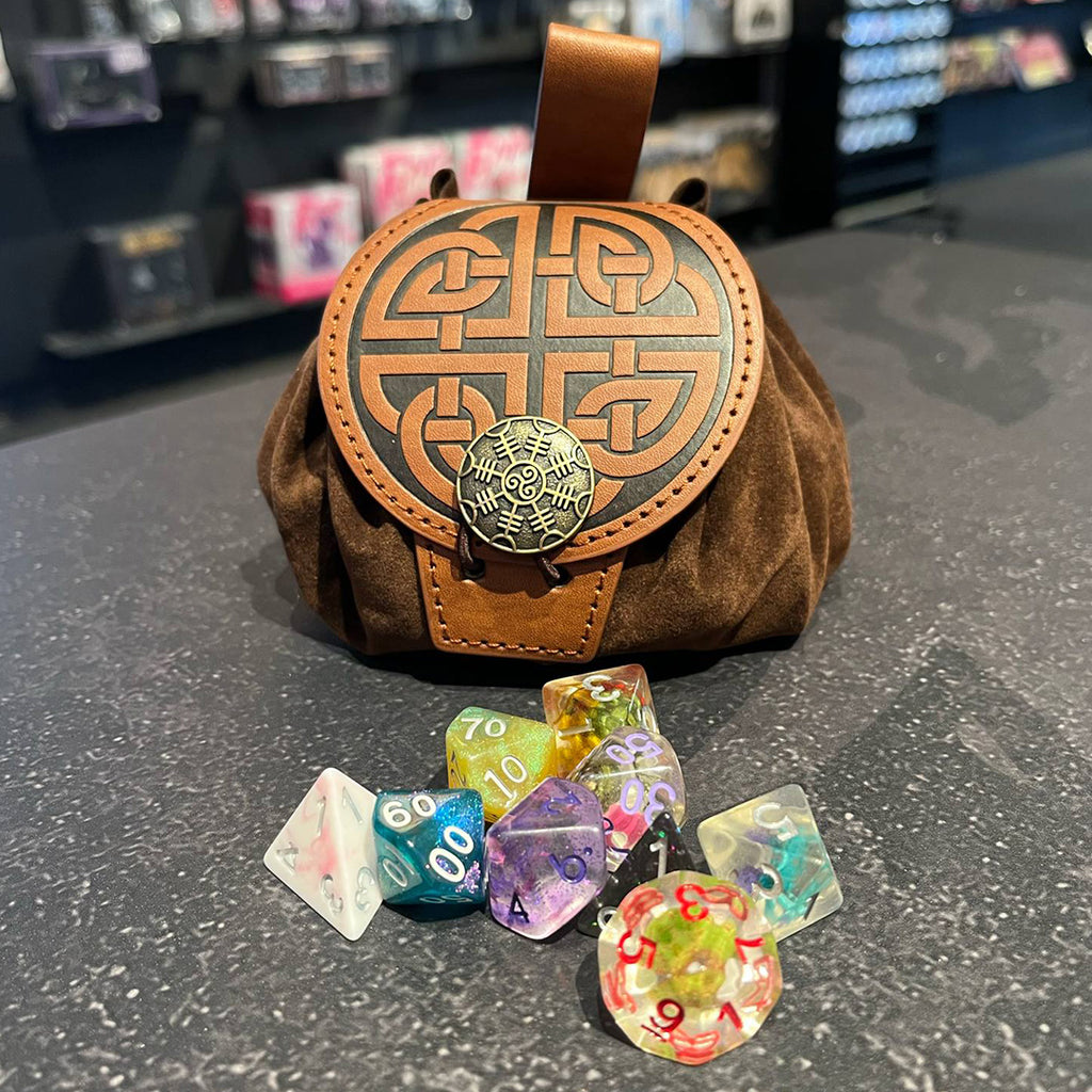 The drawstring closure keeps your dice secure through every battle, voyage, and saga-worthy tavern brawl. Built from tough-as-Hel faux leather, this pouch can weather frost giants, longboats, and even your GM's worst plot twists.