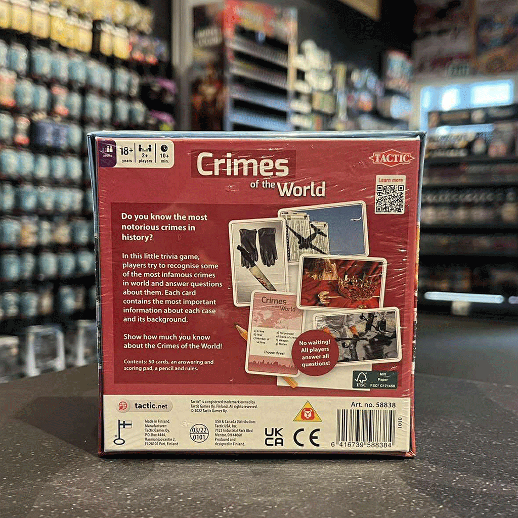 A game full of true-crime classics! Do you know the most legendary, daring and wildest crimes? Recognise the crimes on the cards and answer questions about them. Who perpetrated the crime? What was the motive? Each card contains information that sheds light on the background of the crime and its consequences.