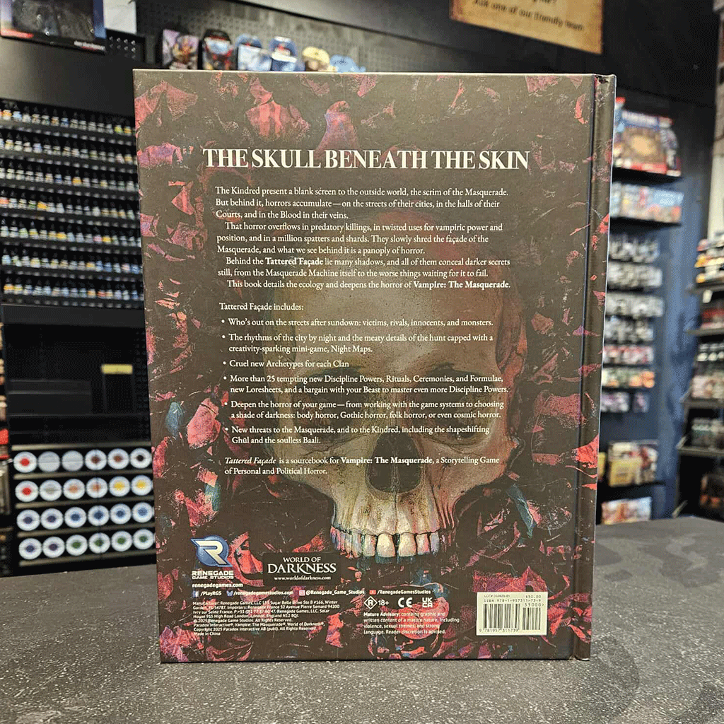 Behind the Tattered Façade lie many shadows, and all of them conceal darker secrets still, from the Masquerade Machine itself to the worse things waiting for it to fail. This book details the ecology and deepens the horror of Vampire: The Masquerade by working with the game systems to choose a shade of darkness: body horror, Gothic horror, folk horror, or even cosmic horror.